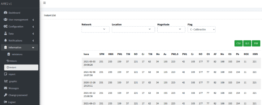 Las Alertas automáticas inteligentes y el Aviso preciso a los diferentes actuadores, serían las principales funcionalidades de este avanzado módulo, junto con la generación y Exportación de informes detallados de todos los estadísticos según legislación para los parámetros contaminantes, en formatos diferentes( pdf, html, word y csv)